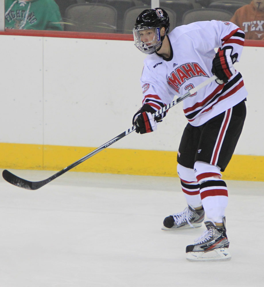 The tallest man amongst the many tall men patrolling the blue line for the University of Nebraska-Omaha’s Mavericks ice hockey team is a 22-year-old from the distant reaches of Pilzen in the Czech Republic. His name is Andrej Sustr and he stands 6’8″ tall. His rosy cheeks and smooth baby face belie the fact that at his altitude, Sustr is a giant playing with boys.