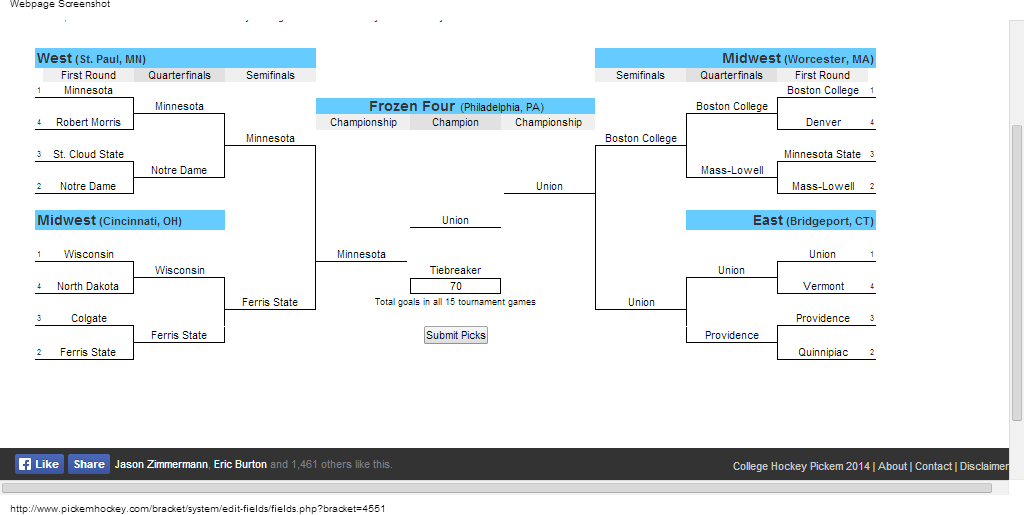 Somewhere John Buccigross would be proud as it is that time of year to crown a NCAA hockey champion. The term “cawlidge hockey” has been affectionately coined and hey it may be a bit overused but admittedly is a little different. I like that. As I have done for every year since 2000, I will be doing yet another college hockey bracket. This year I may do several actually.