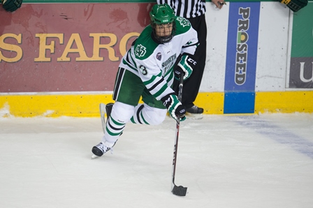 After suffering a defection of freshman forward Adam Tambellini earlier in the week, another UND player made his return to the UND lineup. Suspended sophomore forward Bryn Chyzyk, who missed a month due to a team-imposed suspension, made a big splash in his return scoring (1g-1a—2pts). The sophomore forward would chip in an assist on Saturday night as well.