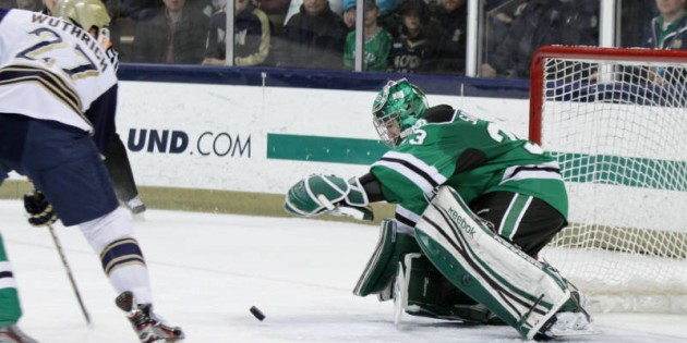 Coming into the season, UND lost 43% of their scoring punch from last year. Gone are All-American forwards Corban Knight (52g-94a—146pts) and Danny Kristo (68g-93a—161pts). Due to the depleted scoring punch: UND is going to have to lean on their goaltending and the defense corps. While we could kill a bunch of trees talking about the players UND lost last season, there’s a solid core of returning players on the UND’s 2013-14 roster. UND’s goaltending tandem is one of this year’s strengths. When it’s all said and done, UND’s two goaltenders will probably play a big part in UND’s success this season.