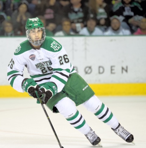 University of North Dakota senior forward Coltyn Sanderson is one of the Fighting Hawks role players. Sanderson is hard-working forward that comes to the rink every day. Sanderson takes no shortcuts and works overtime to get better. Sanderson’s efforts haven’t gone unnoticed by the UND coaching staff.