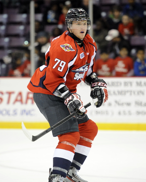 Minnesota, however, could also wish to get their physical edge from a defenceman, especially since most players mentioned up to now have been forwards. The OHL could provide that for them, too, in the form of Erie Otters blueliner Troy Donnay. Donnay, who was acquired in a trade with the London Knights, is a tall, strong rearguard, standing 6’7″, but needs to bulk up his 185-pound frame. He may not have accumulated nearly as many penalty minutes as Bilcke but his size certainly would make him desirable, especially due to the surplus of smaller-stature blueliners currently on the Wild roster, such as 5’11” Steven Kampfer and 5’9″ Jared Spurgeon. Additionally, Minnesota has smaller defencemen in their American Hockey League affiliate with the Houston Aeros, including 5’8″ Chay Genoway and 5’10” Jeff Penner.