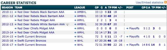 Drafted by the Tri-City Americans in 2013, Geekie did not find a permanent spot on the team until 2015-16, his first NHL draft-eligible season. Of course, Geekie transitioned through a major learning process, becoming accustomed to a much faster and more physical league. With that said, his rookie year was fairly successful, posting 25 points over 66 games. However, he was left off of all major 2016 NHL Draft rankings and ultimately was passed over.
