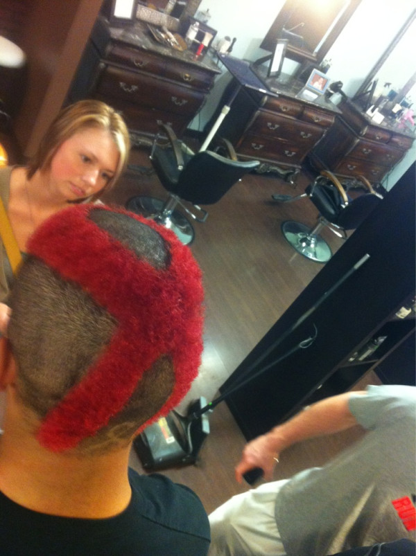 Carolina Hurricanes defense prospect Austin Levi went one step further than just dying his hair pink for the game he had his pink hair shaved into the shape of the breast cancer awareness ribbon.