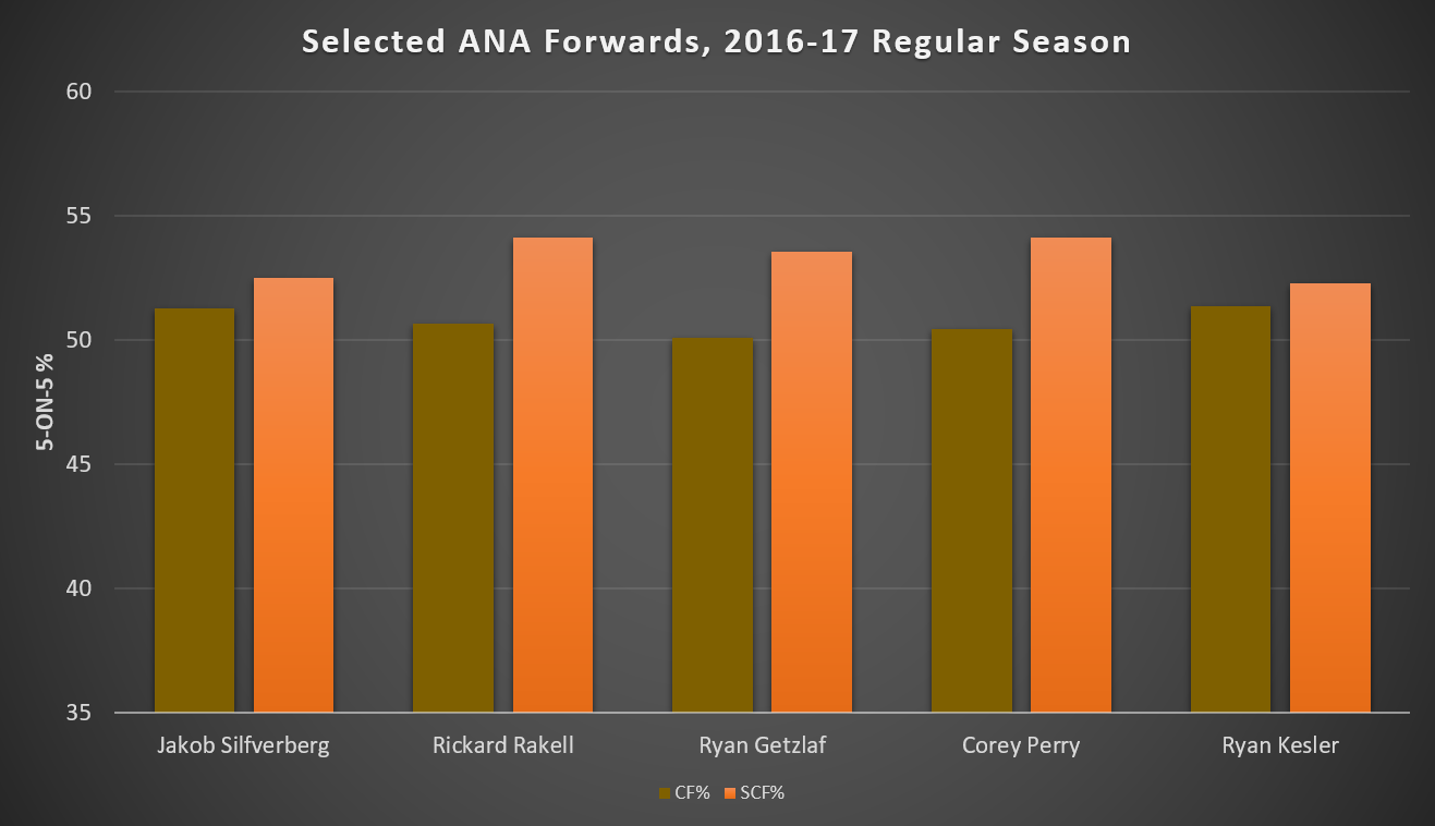 With respect to possession and his ability to generate scoring chances, Silfverberg’s metrics do not look out of place next to those of Anaheim’s big-name forwards, which include emerging star Rickard Rakell and veterans Ryan Getzlaf, Corey Perry, and Ryan Kesler.