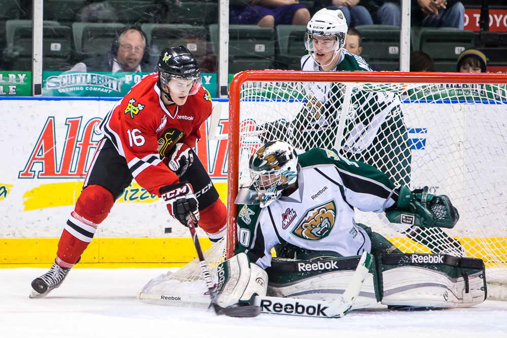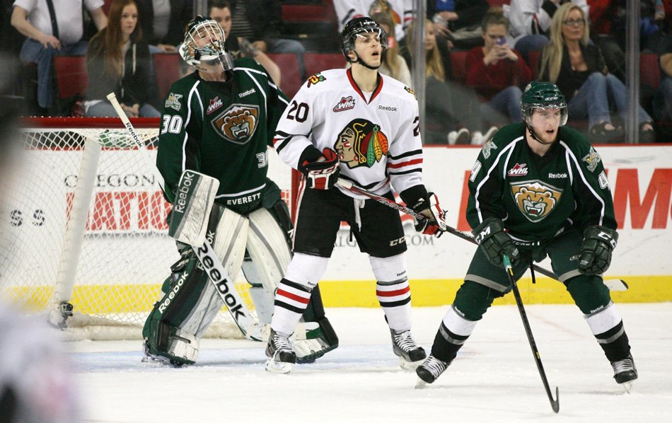 After spending the majority of the 2011-2012 season sitting behind Chicago prospect Kent Simpson, Everett’s Austin Lotz finally got his shot in 2012-2013. Taking over a number one goalie slot at only 17 in the WHL is no easy task and as the season wore on Lotz got stronger and stronger. After a slow start he got hot and put a young Silvertips club on his back and drug them into the playoffs. By the end of the season he was one of the tougher goalies to beat in the WHL and could be a sleeper pick in this year’s NHL draft.