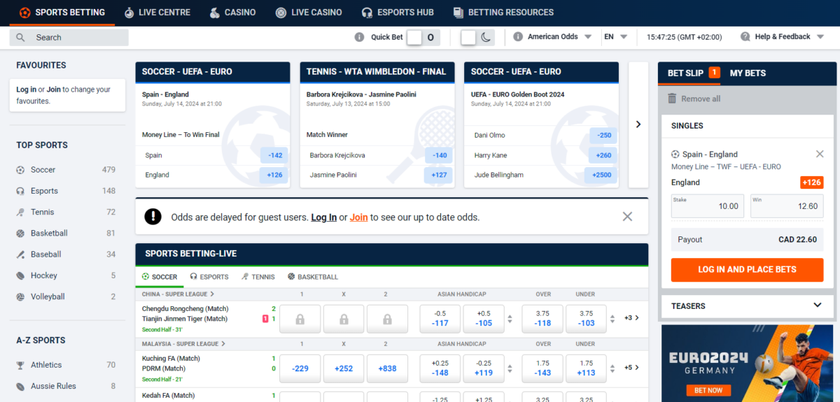 BetVictor is a licensed Canadian sportsbook. It’s primarily known for its casino, while its sportsbook is more focused on basketball—it is the official sponsor of the Canadian Elite Basketball League (CEBL) and one of the only sportsbooks to offer action on the CEBL. Its hockey betting options are limited.