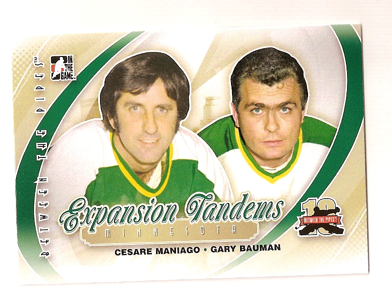 What really jived was Between the Pipes’ hockey education subsets, which, among other themes, spotlighted the best goalies from Quebec, the U.S., the international game and the past few decades. But what really stood out was the “Expansion Tandems” run, which highlighted pairs of goalies from the “Expansion Six” era. The re-telling of the adventure of these goalies’ move to their new clubs is phenomenal on the cards’ reverse.