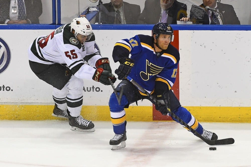 Playing in the final home game of the 2014 preseason, the St. Louis Blues trounced the Minnesota Wild, 4-1. Rookie goaltender Jake Allen earned his first victory of the preseason, stopping just 14 shots on goal. Blues tough guys Ryan Reaves and Paul Bissonnette, both playing on the same line, accumulated a total 19 penalty minutes (including three fights between them). However, it was the young man wearing the No. 17 on his back that stole the spotlight.