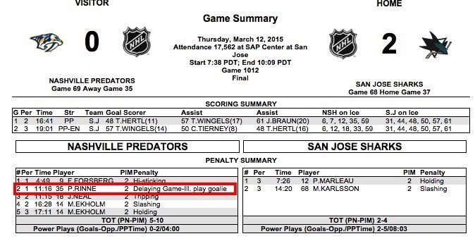 *It’s difficult to find the data for how many of these penalties have been called. With no penalty database (to my knowledge) I had to go to game sheets for individual games where the trapezoid penalty is listed as “Delay of Game-Ill. play goalie”. However, there were some cases where the penalty was just listed as “Delay of Game” with no explanation. Doing some research through the game sheets combined with some investigating on Twitter, I counted 32 times the infraction was called in the past 5 seasons. I imagine the figure could be off by just a few in either direction but not by enough to make an actual difference in the point.
