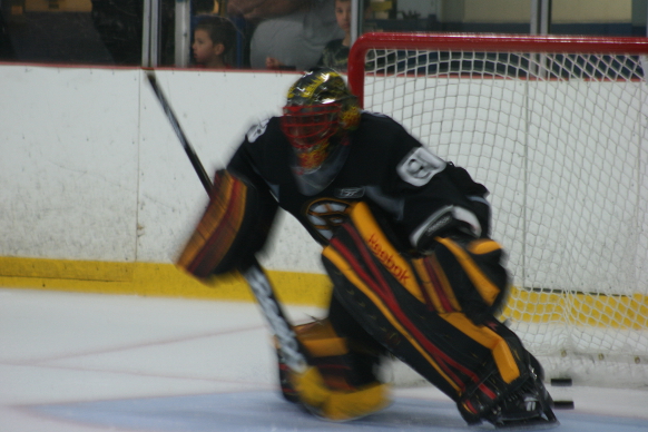 In his second Boston Bruins Dev. Camp, Lars Volden stayed consistently square and followed the play with some solid lateral speed. Impressively, he scrambled to make unconventional saves when his butterfly failed him – something I didn’t notice in 2011.