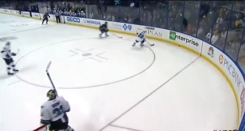 Boyle’s face has now connected with the dasher. Lapierre has completely thrust his body into Boyle’s, causing a huge collision. Slightly after this, Boyle was flat on the ice and the line brawl ensued.