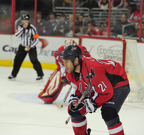 Trotz has considered Laich at center, but using him at left wing is the best option. He can be an adequate skater when healthy. He has had two surgeries over the past few seasons, with abdominal surgery in 2013 and adductor surgery this past year in March.