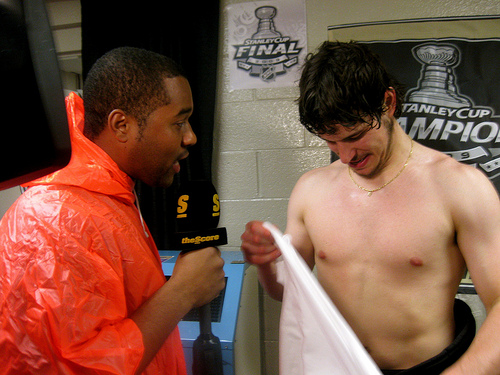 It may appear like an opportunity for highly secluded athletes to gain positive publicity in a light-hearted way. In fact, it very likely is the point. However, getting Crosby to talk about the size of his (stick’s) knob or encouraging Captain Serious (Toews) to admit he’s having “so much fun”, is Richards’ favour to the NHL. When Crosby finishes giggling at the word knob, his next answer is more genuine, his shoulders sag and relax. After all the post-game interviews, press conferences, and public appearances, it’s still impossible to relate to that gosh-darn hockey player gloss that so many young players wear. Since the draft years that featured names like Crosby, Evgeni Malkin, and Alex Ovechkin, there has been a renewed interest in the draft and thus more youthful, frontier-destined talent. Cabbie, now with TSN, can make the New NHL a place where interviews are fun again, where “pumping tires” can produce meaningful journalism, and where close-talking is not a reviled approach exclusive to Pierre McGuire.