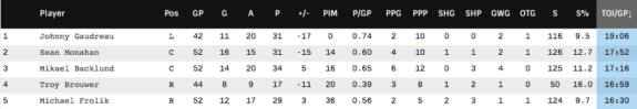 One player whose drought has caught the most attention is, of course, Johnny Gaudreau. With only two goals in 13 January games, Gaudreau has become a lightning rod for what ails the Flames. It’s not just about production, though, as he has been guilty of committing multiple costly turnovers at crucial points in games throughout the month.