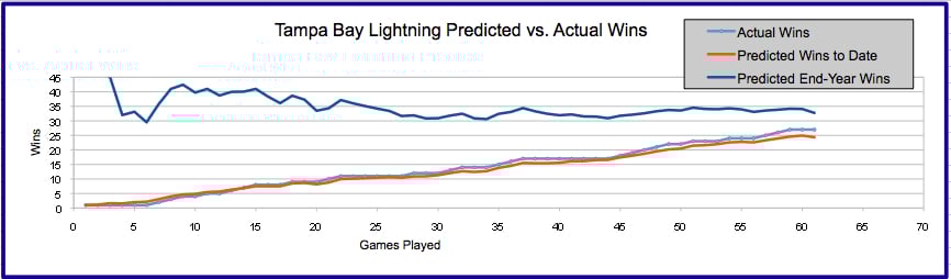 Here is the Tampa Bay Lightning’s predicted and actual wins in 2011-12, based on the formula.