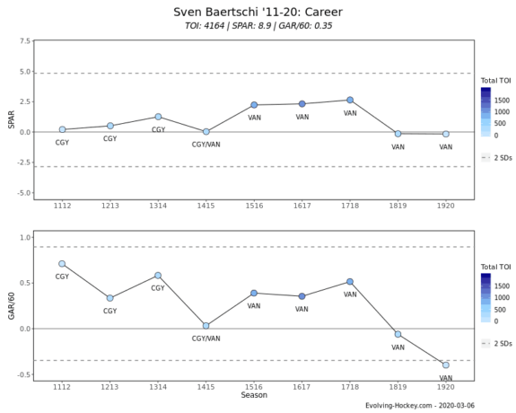 The 27-year-old Baertschi is arguably already passed his peak performance, too. He has seen a significant drop in his ability to generate offence over the last two seasons, falling below replacement-level.
