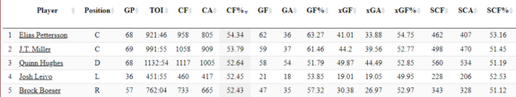 Leivo’s performance kept pace with the first line – that’s elite company and shows he can sustain his solid play over a long period of time. Since joining the Canucks, he has continued to develop into a strong even-strength play-driver.
