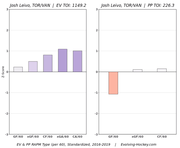 He could plug a hole in the top-six alongside Pettersson or Horvat if needed, but his true ability is to drive the play from the third line. For this reason, I see him a permanent left-winger for Adam Gaudette and Jake Virtanen. The two youngsters generate shots, goals and scoring chances at solid rates. Where they struggle is consistently driving play and their overall defensive acumen. Leivo would be a nice fit alongside them and could provide the much-needed depth scoring the Canucks need.