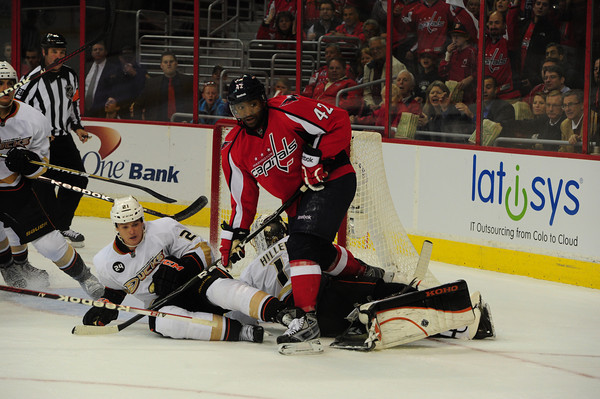 From a first look, the Caps’ gameplay didn’t look much different, as they were badly out of position defensively and in net again, and quickly fell to a 3-0 deficit at the hands of Teemu Selanne and Cory Perry. The difference here was that Washington’s “bottom six”, such as a the CLaW line and Matheiu Perreault, were there for them, and Vokoun was able to recover from his early mistakes. Usually when your goaltender shows up, it boosts confidence in the rest of the defense, leading toward the offense and making comebacks like this possible.