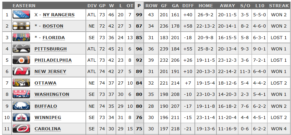 If you ask a Sabres or Jets fan, the Caps are in a good place. But with two weeks of hockey left there’s still enough time for a major Eastern Conference shakeup. The Caps have a tenuous hold on 8th place with 80 points and nine games remaining. They’re likely going to have to win at least six of those to guarantee a playoff date.
