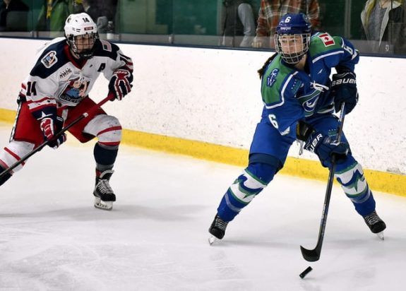 Shannon Doyle has just about seen it all over her 40 pro games since the inception of the Connecticut Whale in the NWHL and after talking with her for just six minutes it’s clear why she was chosen by her teammates to be an alternate captain in her third season. It’s not the fifteen points she’s chipped in from the blueline or the 77 shots on goal the defender has fired at goalies or the countless goal posts she’s pinged a shot off of. It’s her character, her personality, and her belief in her teammates.