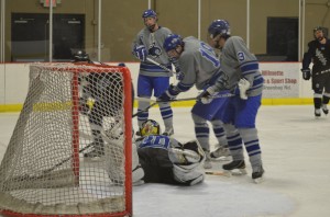 By the third period, civility broke down at both ends of the ice with the Panthers’ sophomore Steve Kriebhauser and Blue Demons junior Joe Gatto each receiving ten minute penalties for misconduct.