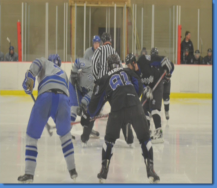 Throughout the game the Blue Demons kept themselves in the play typically scoring on second and third deflection shots. Senior Andy Ritter scored twice in the second period at 14:03 on an assist from juniors Kurt Akersand Tom Jepsen and at 8:59 on the clock, teaming again with Akers and this time sophomore Pierce Baron.