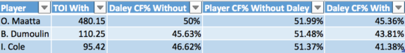 For starters, he and his most consistent partner from last year in the form of Olli Maatta were never able create chemistry. This was the case for the entirety of Daley’s tenure. In 2015-16, Daley’s most common partner was Brian Dumoulin. The numbers speak for themselves.
