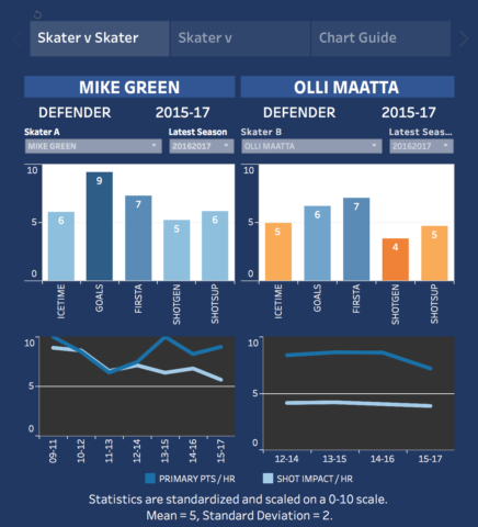 One has to wonder if the change to a partner with more experience and ability to generate shots will do Daley well this season. At this point in his career, he needs a player alongside him who can make him better. Green, in need of a new partner himself, could do just that with more raw offensive production and shot impact to offer relative to the stagnant Maatta. Daley should also get Green’s best offerings with him likely auditioning for a new home next summer.