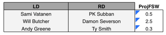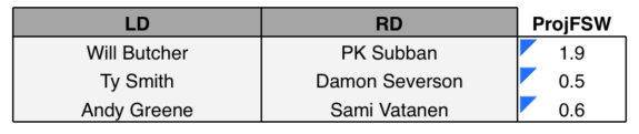 Their 0.3 ProjFSW isn’t great, but that’s partly due to Subban’s down season, where he finished with a minus-0.1 WAR. If he’s able to rebound, which evidence suggests he can, they could end up beating out their projections (the same is true of any pair with Subban on it).