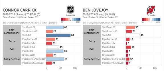 Even though Carrick isn’t a significant upgrade, he’ll be able to help in some areas Lovejoy couldn’t. The Devils’ defensemen have struggled to pass the puck this season, and that’s led to them getting hemmed in their own end too often. Carrick isn’t an elite passer, but that’s where he has an edge over Lovejoy.