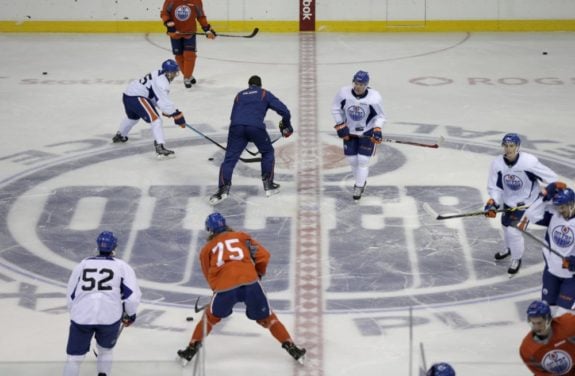 Then there are the twin sons of former Oiler Peter Klima. Kelly and Kevin both play for the QMJHL’s Chicoutimi Sagueneens and had 49 and 36 points respectively last season. Todd McLellan’s son, Tyson, has also been invited to camp. Tyson McLellan, 21, is an undersized forward at 5’9″ and 165 pounds who played for the University of Denver last season. McLellan had 25 points in 46 games last year.