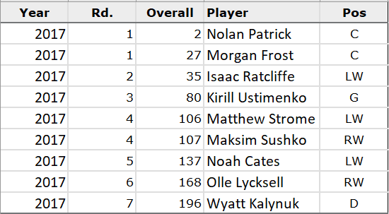 In addition to selecting Patrick and Frost, the Flyers drafted seven other players in 2017.