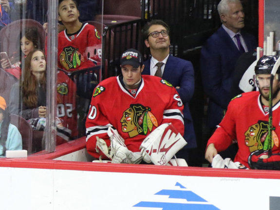 Interestingly, Semborski nearly made history for the same reason just a few months prior against the Flyers. Prior to the Blackhawks’ game in Philadelphia on Dec. 3, 2016, starting goalie Corey Crawford developed sudden appendicitis. This forced backup goalie Scott Darling into net while Semborski was called on to serve as the Blackhawks’ emergency goalie.