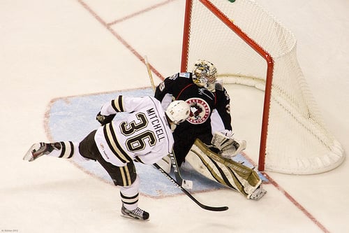 Mitchell has been perhaps Hershey’s most consistent forward, playing primarily on the second line with Mike Carman and Boyd Kane. With two goals on Saturday night, Mitchell is third in forward point product for Hershey, with seven points. Mitchell is tied for the team lead in goals scored as well.