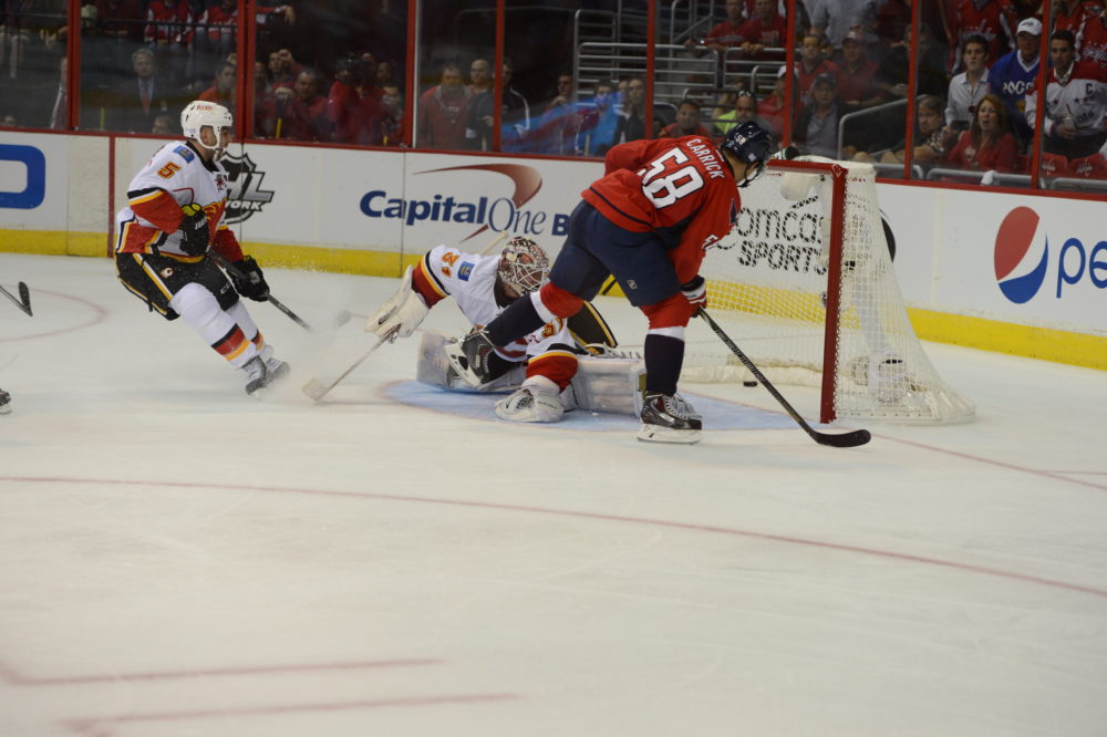 Rookie defenseman Connor Carrick recorded his first goal of his career at the NHL level for Washington, scoring just seconds after he left the penalty box following a hooking penalty.