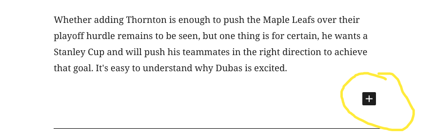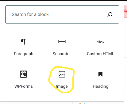 Okay, so here’s how you insert images. Choose where you want the image to go (have one placed roughly every 300 words). Hit Enter/Return after the paragraph that precedes where you want the image to go. This creates a new block. Click the little plus (+) sign and search for the image block. It looks like a polaroid image.