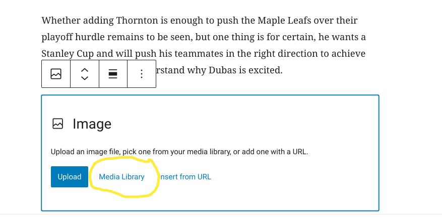 After that, the following screen will appear. This is the image block itself. Click Media Library.