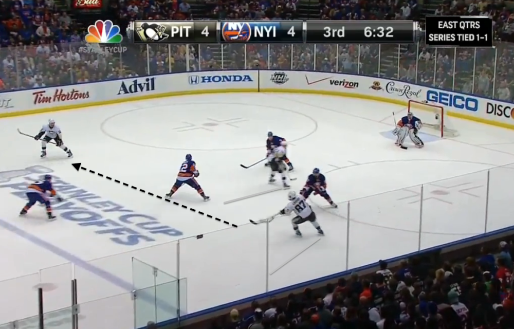Flip-flop this play and imagine Crosby feeding Iginla on the left wing for one-timers.