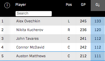 From the moment Matthews scored four goals in his first NHL game back on Oct. 12, 2016, in Ottawa, we knew he would be something special. He went on to score 40 goals in that rookie season; however, he has dealt with injuries in each of the last two seasons, missing 34 games in the process. He’s been as productive as ever, as his 111 goals since his NHL debut ranks fifth in the league despite playing far fewer games than his peers. To emphasize the potency of the Maple Leafs’ top two centers, it makes sense to consider who No. 3 on this list is as well.