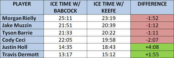 While Holl is still being deployed fifth-most under Keefe, he has had the largest uptick in usage under the Maple Leafs’ new bench boss with an increase of over four minutes per game. He’s also being used in a shutdown role alongside Jake Muzzin as the two have generally been tasked with matching up against top competition.