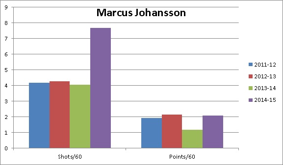 Marcus Johansson took eight shots on goal Tuesday night against the Columbus Blue Jackets, a career high. His willingness to shoot the puck more has led to arguably his best start to a season in his professional hockey career.