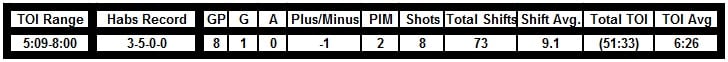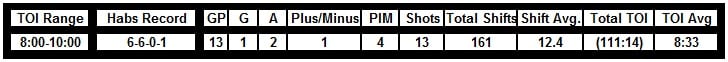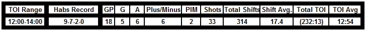 - The second most common amount of ice-time that Darche sees also happens to produce a .500 record for the Habs.