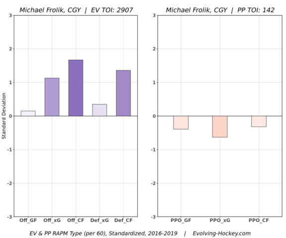 If we expand Frolik’s numbers to include three seasons, they still impress. He’s averaged 1.56 P/60, and he has a CF% of 56.22 percent and an xGF% of 53.48 percent since the start of 2016-17. His impact on the ice has been noticeably positive, too.