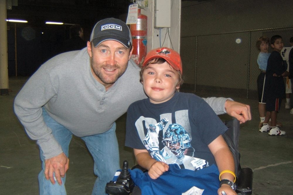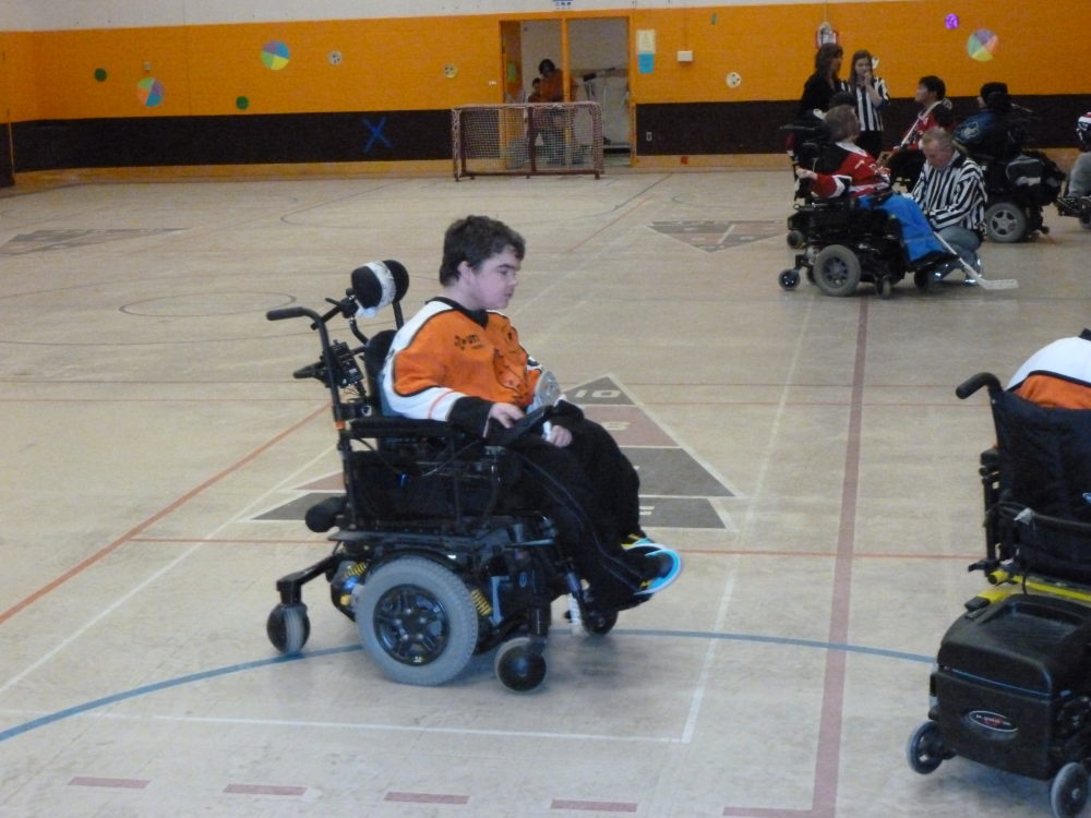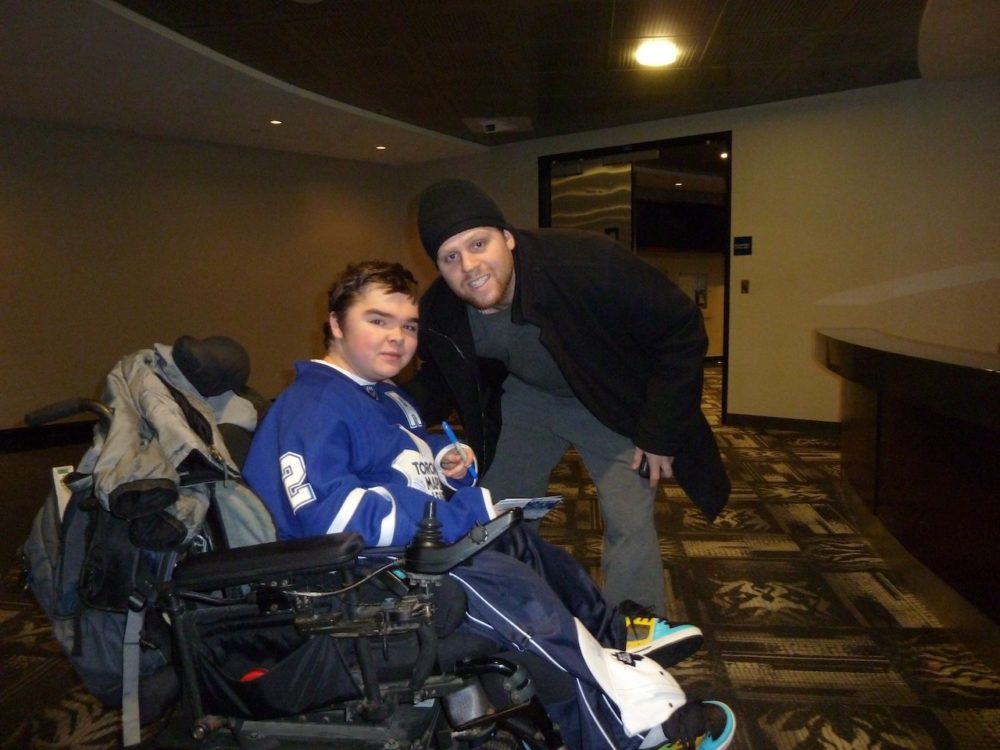 I didn’t clue in that I had a disability until I was 9 years old. I would need a walker or a wheelchair whenever I got tired. My parents told me I had something called Duchenne Muscular Dystrophy, a progressive and degenerative muscle disorder. As I matured I began to weaken further. At age 12 I lost the ability to walk and I have been confined to a wheelchair ever since. I never let the fact that I am confined to a wheelchair bring me down. My parents have always taught me to take life as it comes and be happy with what you have. Besides, there have been two important stages of my life that would never have been possible without hockey. At age 9, I was named the ambassador of the Oakville Rangers rep hockey team. I went to every game and tournament for two seasons. Those were two of the best years of my young life. I was given a team jacket and hockey jersey and I felt like I was a player on the team.