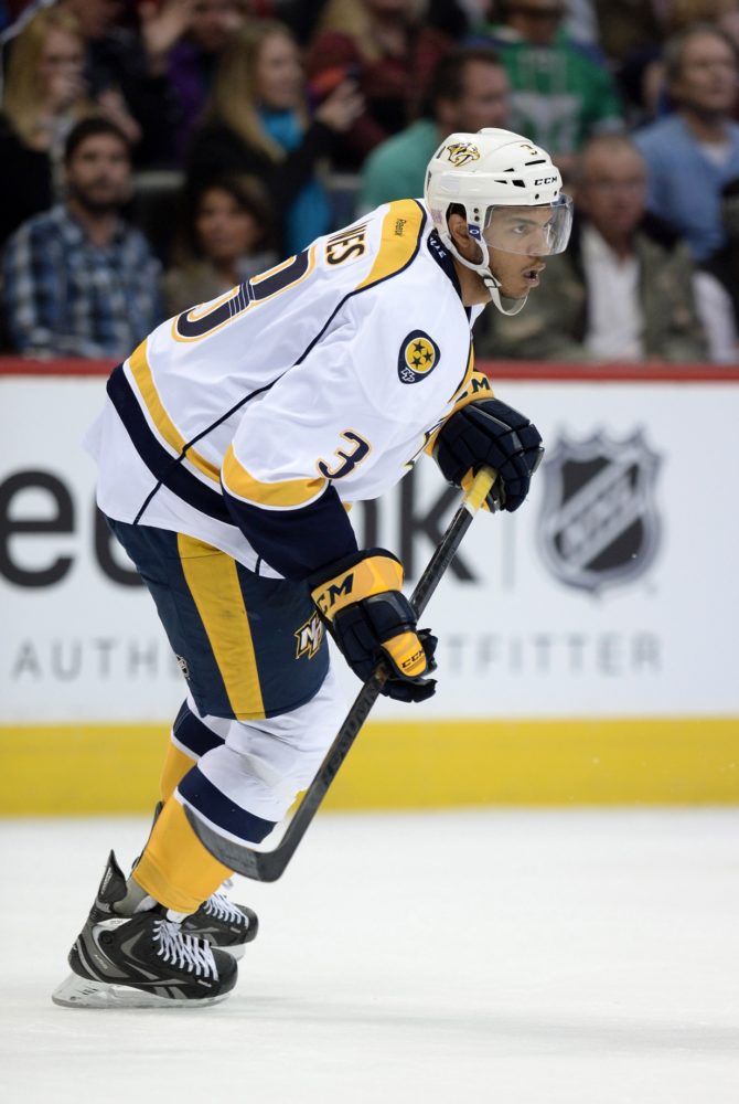 The goal against the Habs – which drove me into a fit of hysterics because of how completely unfair it was – has been the shining example of Jones’ skillset so far, but his game is so much more than flashy scoring plays. Between his passing and skating he can pretty much always clear the zone, and he’s so fleet-of-foot that he can be the third or fourth man into a corner scrum without any real worry about whether he can get back to cover if things go horribly wrong. He makes subtle moves to create passing lanes to his forwards – or set up a Weber howitzer – with alarming frequency, and he’s got a smart delivery from the point his own self. The strength and positioning issues that plague every young defenseman are still there, obviously, but that comes with time, and across from the best defensive defenseman in the league.