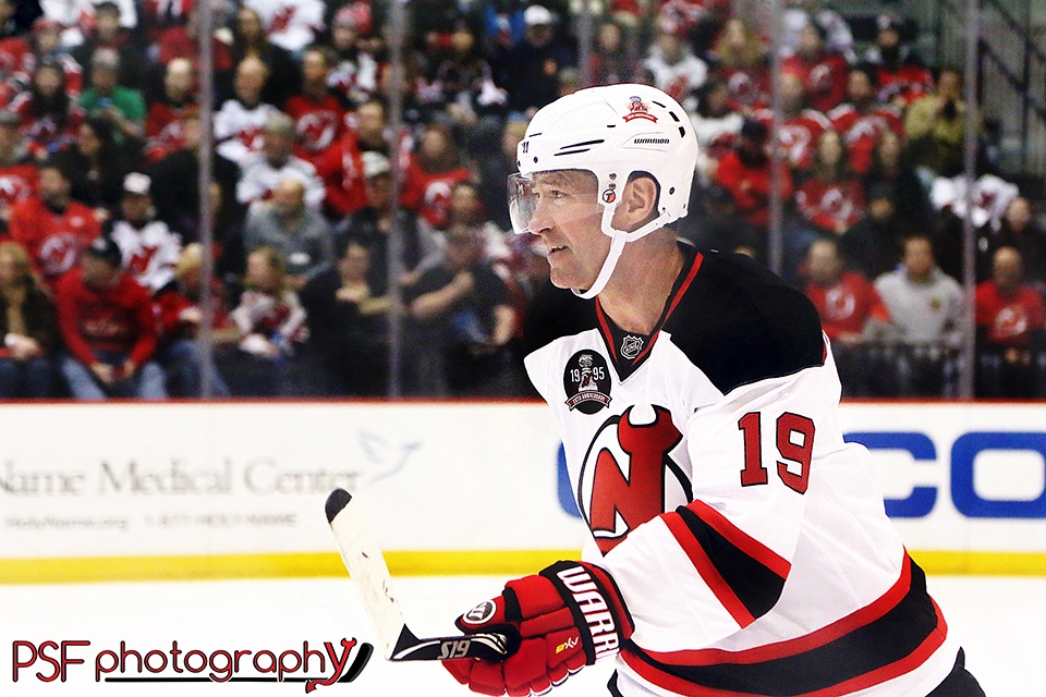 Over the weekend of March 7-8 the New Jersey Devils welcomed back 23 players and coaches from their first Stanley Cup winning team of 1995. It was the first time that that many of them had been together since sweeping the heavily favored Detroit Red Wings in four games that June. “This is nice to have a lot of them back. We’ve had some of them back (here) in different capacities in different years,” said Bruce Driver after an entertaining alumni game, “guys that work for other teams when they come through (New Jersey).”