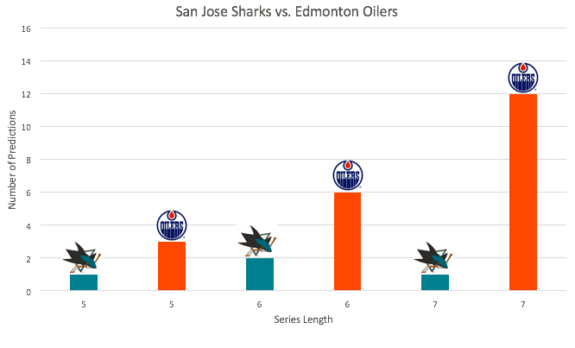 The Oilers certainly have momentum going into the postseason, going 12-2-0 in their last 14 games. Meanwhile, the Sharks have gone 5-9-0 in their last 14 games of the season. All of this contributed to our 21-4 predictions in favor of the Oilers defeating the Sharks. However, the consensus from almost half of us (12) is that the Sharks will push this series to seven games.