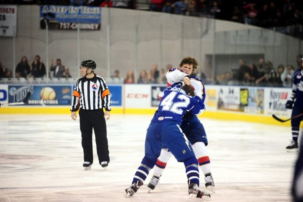 As far as tough guys, Norfolk had their fair share of those too. They included Jay Rosehill, John Kurtz, and Pierre-Luc Letourneau-Leblond. These players mushed the opposition with an arsenal of uppercuts, jabs, left hooks, and right hooks. Rosehill was traded to the Flyers at the trade deadline for forward Harry Zolnierczyk. John Kurtz began the season on a standard American League contract, but fought his way to a NHL contract earlier this month. Pierre-Luc came to Norfolk mid-season by the way of reassignment from the Ducks. Letourneau-Leblond was invited to Ducks training camp via free agency and edged his way to a 1-year contract.